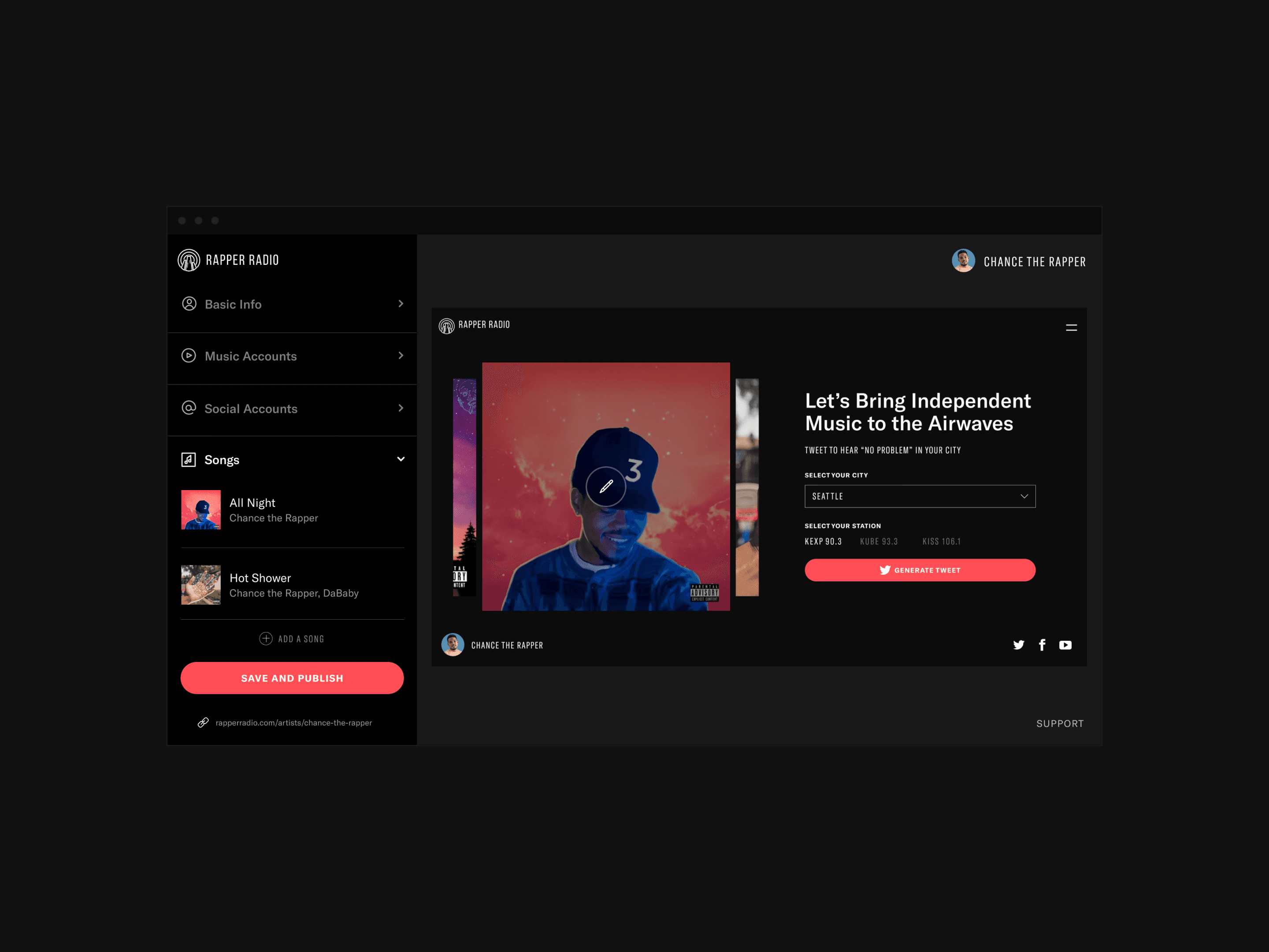With digital platforms becoming essential for artist promotion, there was an opportunity to provide independent musicians with tools to amplify their presence and mobilize fan support. By leveraging the viral success of Chance the Rapper’s campaign, we aimed to create a platform that empowered artists to control their narrative and connect directly with listeners.